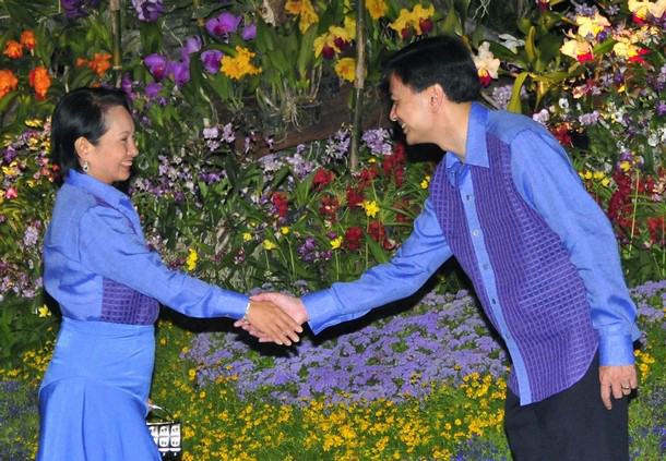 Si Presidinti Arroyo nakigalang kuni Primir Ministro Abhisit Vejjajiva sa kararaté na sa ASEAN piririgan pangapunan sa Cha-am, Tayland Pibraro 28, 2009.
